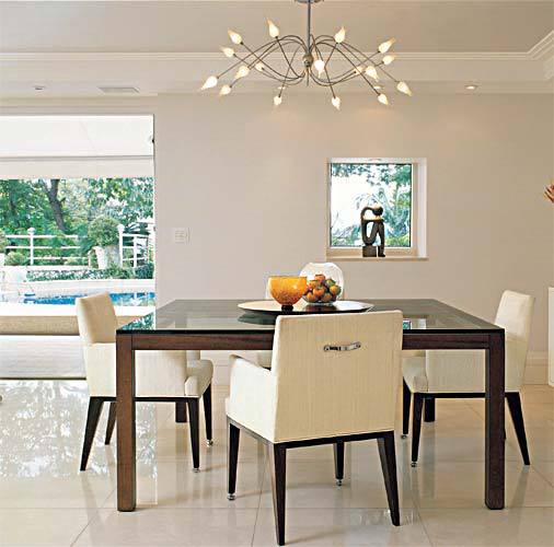 28- Sala de jantar com plafon de embutir no teto! Modelo de cristais, moderno e requintado! Amei esse modelo quadrado!! Penso num assim grande para minha sala de jantar!!
