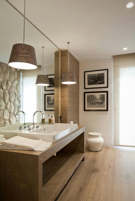 52- Banheiro com pendentes de cada lado do espelho!! Penso num modelo assim para os meus banheiros!