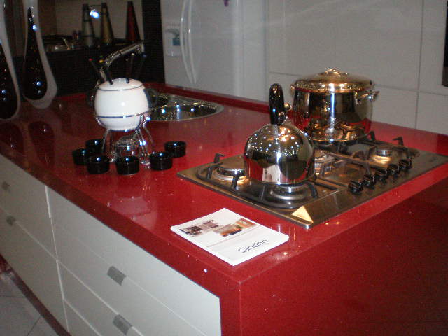 34- Silestone ou Quartz Stone Vermelho Stellar - na bancada da cozinha!