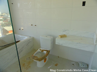 2- Mármore Branco Souza - usei na minha suíte, na bancada e na banheira! (não reparem na sujeira, rsrs)
