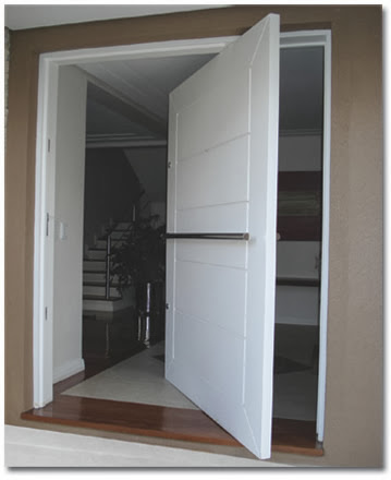 • De abrir: esse modelo de porta é ideal para ambientes que exigem certa privacidade. Com uma ou duas folhas, deve ser aberta preferencialmente de forma a impedir que se tenha a visão interna do ambiente.