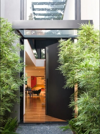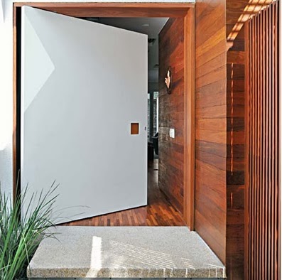 7- Fachada contemporânea! Porta pivotante de madeira!!