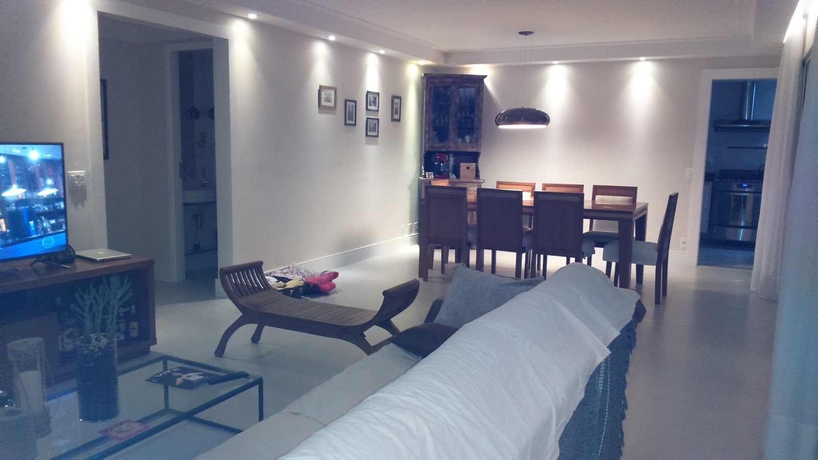A sala é o cartão de visita da nossa casa, e nela devemos imprimir através das cores, design dos móveis e objetos nosso gosto e personalidade. E como as salas são os espaços que mais horas passamos sozinhos, com amigos e familiares, deve ser um lugar aconchegante e o menos carregado de informações possíveis para não enjoarmos facilmente. Também deve ter tudo que se precisa para sentar, assistir um bom filme, fazer a alimentação, guardar objetos, louças, livros e combinar praticidade com conforto. Então, hoje compartilho com vocês as salas integradas da querida leitora de SP, ela precisa de ajuda para decorar e trocar os móveis, deseja manter o sofá, TV, adega, rádio vintage e a nova mesa redonda de 6 lugares, deseja o estilo clean! Agora venham comigo se inspirar!!!